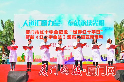 今天是第70個世界紅十字日,新《紅十字會法》也于今日起施行。新法增加了紅十字會參與推動無償獻血、造血干細胞捐獻及遺體器官捐獻等方面的職責(zé)。昨天,市紅十字會攜手廈門眼科中心在五緣灣舉行“紀(jì)念世界紅十字日暨新《紅十字會法》頒布實施宣傳活動”,數(shù)百名志愿者及家屬參與。