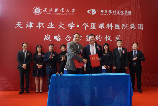 眼科醫(yī)院集團在華廈眼科醫(yī)院集團總部五緣院區(qū)大樓簽訂戰(zhàn)略合作協(xié)議,共同成立與建設(shè)“天津職業(yè)大學(xué)華廈眼科視光學(xué)院”。華廈眼科集團董事長蘇慶燦、專家委員會主席趙堪興教授、副總院長王騫教授、副總裁張昊志、張洪濤和天津職業(yè)大學(xué)校長劉斌帶隊的校領(lǐng)導(dǎo)一行出席本次簽約儀式。