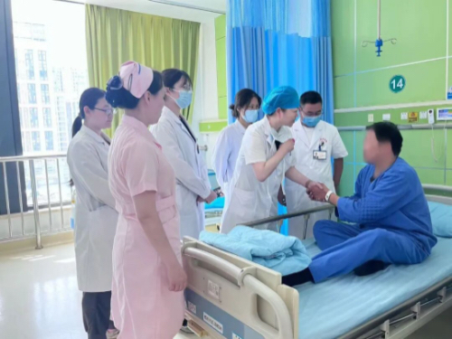 術后,老白激動地握住潘院長的手,向醫(yī)療團隊表達感謝