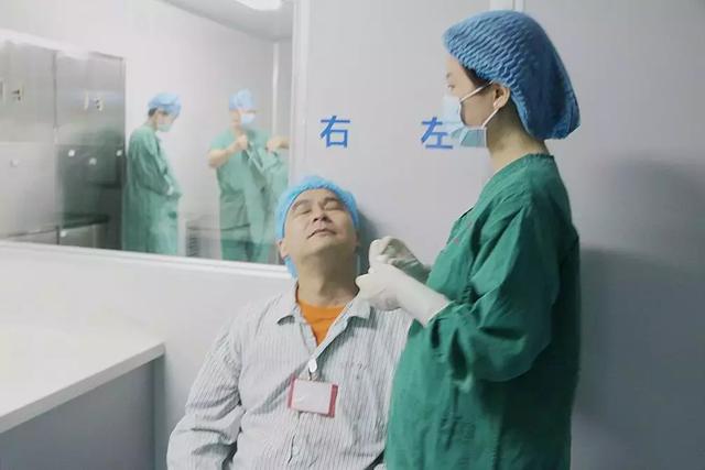 護士為蘭小川醫(yī)生進行消毒和點麻藥
