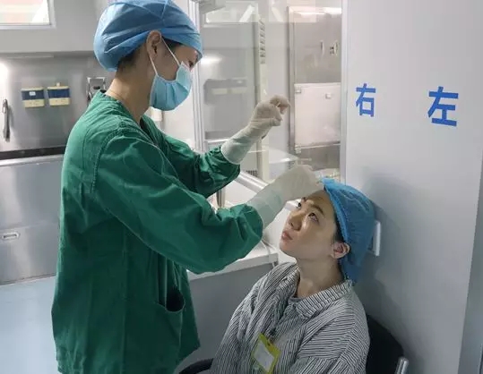 護士小姐姐為摘鏡的醫(yī)生消毒點麻藥