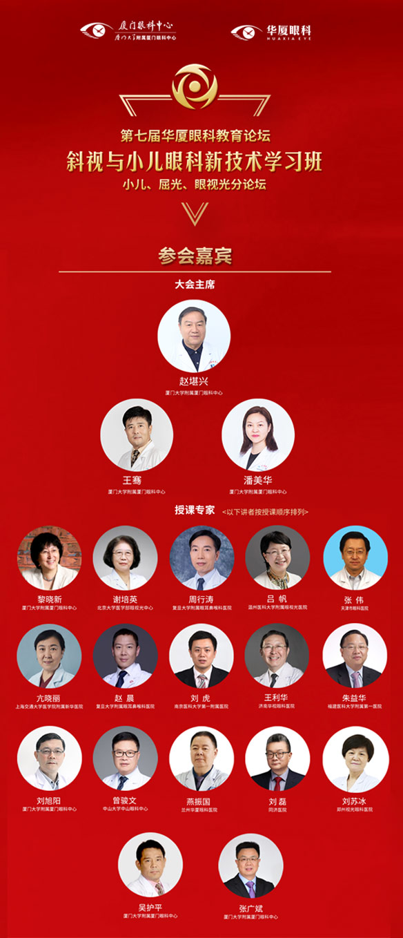 巔峰聚首,百家爭(zhēng)鳴!10月18日-21日,由廈門(mén)大學(xué)附屬?gòu)B門(mén)眼科中心主辦的“斜視與小兒眼科新技術(shù)學(xué)習(xí)班暨第七屆華廈眼科教育論壇小兒、屈光、眼視光分論壇”云端際會(huì),精彩盛放。本屆論壇由47名大咖學(xué)者領(lǐng)銜主講,匯集國(guó)內(nèi)眼科領(lǐng)域金字塔尖專(zhuān)家,為我們帶來(lái)智慧激蕩的高峰論劍。大會(huì)主席:國(guó)際眼科科學(xué)院院士、華廈