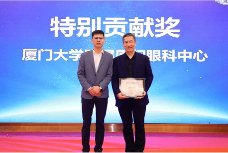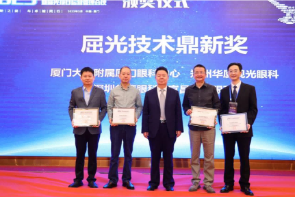 ▲ 燕振國教授為廈門眼科中心頒發(fā)“屈光技術(shù)鼎新獎(jiǎng)”