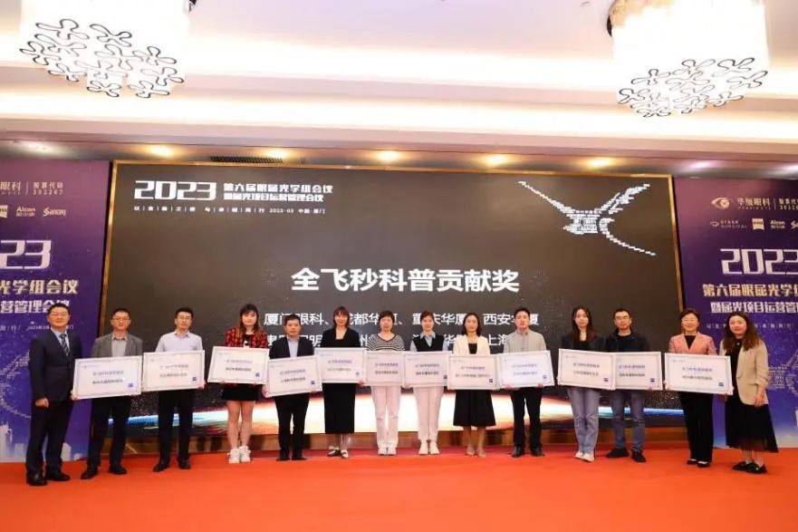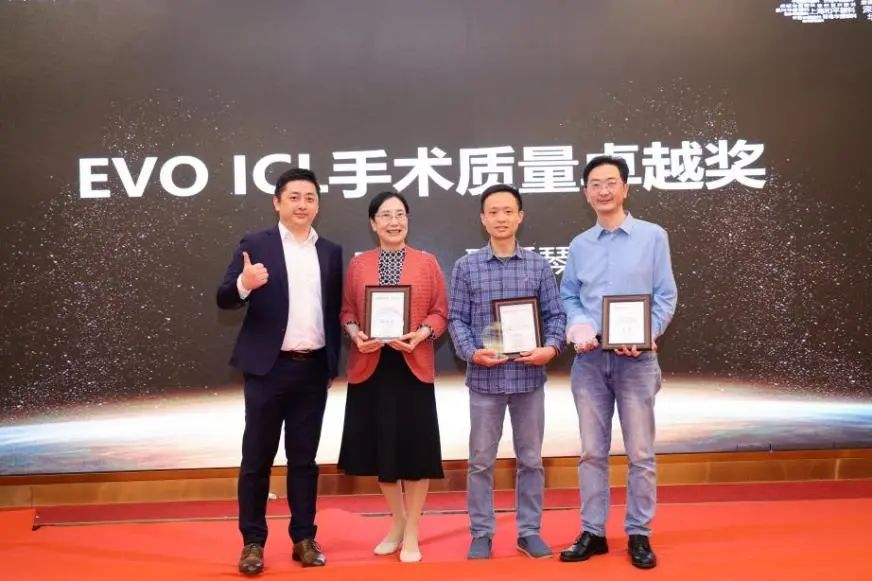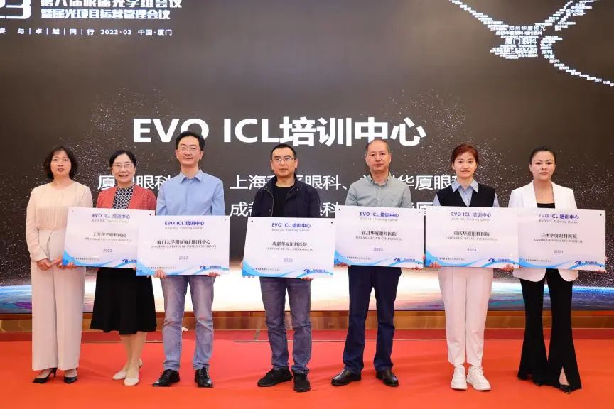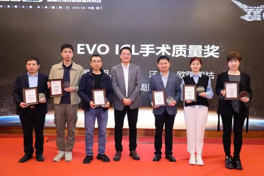 隨后,2022年度眼屈光學(xué)科各類優(yōu)秀獎(jiǎng)項(xiàng)進(jìn)行了同步表彰,廈門眼科中心獲得多項(xiàng)殊榮,其中包括“2022年屈光項(xiàng)目特別貢獻(xiàn)獎(jiǎng)”、“屈光技術(shù)鼎新獎(jiǎng)”、“蔡司屈光手術(shù)培訓(xùn)中心”、“EVO ICL培訓(xùn)中心”、“個(gè)性化微飛秒全球認(rèn)證屈光中心”、“SMILE手術(shù)精益獎(jiǎng)”、“全飛秒科普貢獻(xiàn)獎(jiǎng)”等授牌,屈光手術(shù)中心多位醫(yī)生被授予“EVO ICL手術(shù)質(zhì)量獎(jiǎng)”、“EVO ICL手術(shù)質(zhì)量卓越獎(jiǎng)” 。