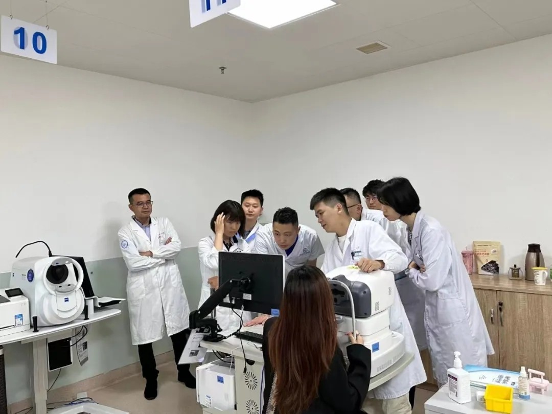聽完精彩的授課,參培醫(yī)師在史小玲主任的帶領(lǐng)下來到廈門眼科中心門診進行 門診觀摩 ,實地了解和學(xué)習(xí)ICL術(shù)前檢查和術(shù)后觀察處理流程,通過技能操作進一步了解ICL晶體植入手術(shù)的各項要點。