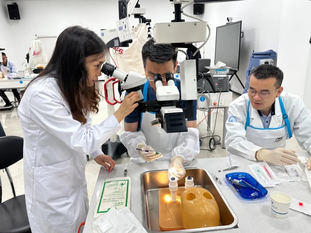 導(dǎo)師們手把手給學(xué)員講解手術(shù)方案設(shè)計,指導(dǎo)學(xué)員在動物眼上操作,帶領(lǐng)學(xué)員們逐一剖析手術(shù)過程中存在的難點、要點,對每位學(xué)員的操作都進行細(xì)致的復(fù)盤講解,讓每位學(xué)員都能有所學(xué)、有所知、有所獲,從實踐到理論夯實手術(shù)技巧。