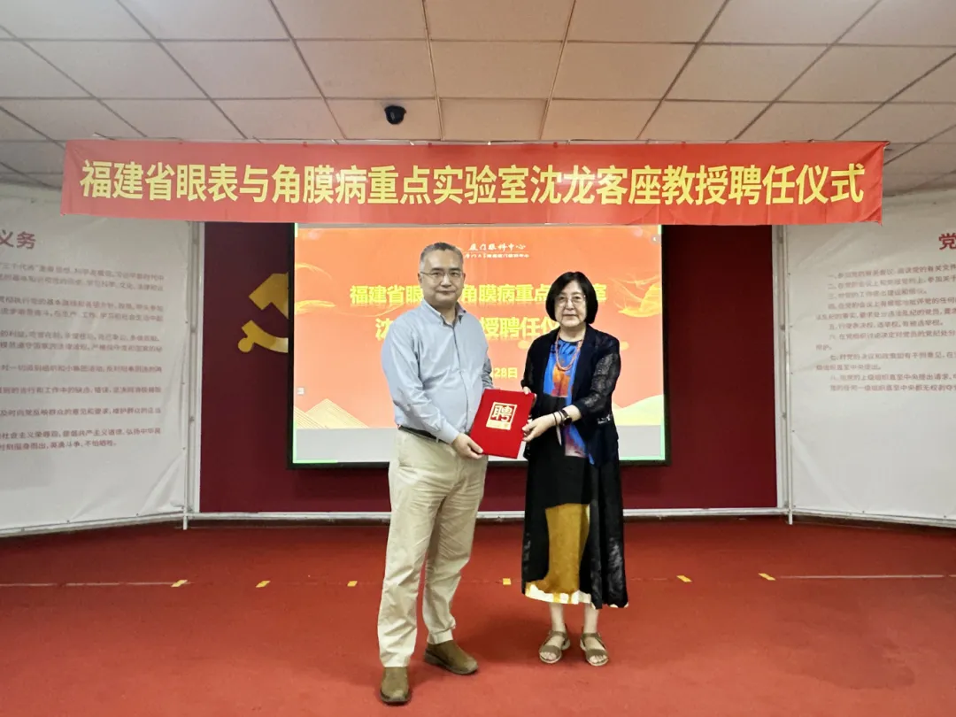 受聘儀式上,沈龍教授表示,廈門(mén)眼科中心在眼科領(lǐng)域有著卓越的成就,隨著科研實(shí)力的逐年提升,醫(yī)院平臺(tái)優(yōu)勢(shì)愈發(fā)凸顯。此次深度合希望能與廈門(mén)眼科中心專(zhuān)家團(tuán)隊(duì)共享國(guó)際前沿研究,探討學(xué)術(shù)難題,為攻克眼科領(lǐng)域重點(diǎn)難題貢獻(xiàn)智慧力量。