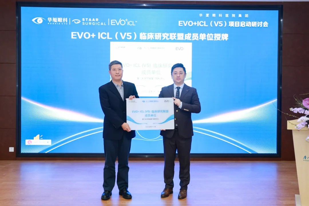 作為本次盛會的東道主,廈門眼科中心不僅以核心承辦方身份彰顯區(qū)域眼科標桿實力,更憑借深厚的技術積淀,在現(xiàn)場獲頒“EVO+ ICL(V5)首批臨床應用合作中心”與“EVO+ ICL(V5)臨床研究聯(lián)盟”兩項授牌,成為福建省唯一入選該臨床研究聯(lián)盟的醫(yī)療機構。這不僅是對其臨床能力的高度認可,也進一步鞏固了其在區(qū)域內在眼內屈光技術發(fā)展與臨床標準制定方面的引領地位。