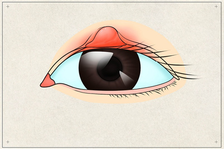 2、眼瞼皮下可觸及一至數(shù)個(gè)大小不等的圓形腫塊,小至米粒、綠豆大至黃豆、櫻桃,表面光滑不與皮膚粘連,邊緣清楚,無(wú)觸痛。